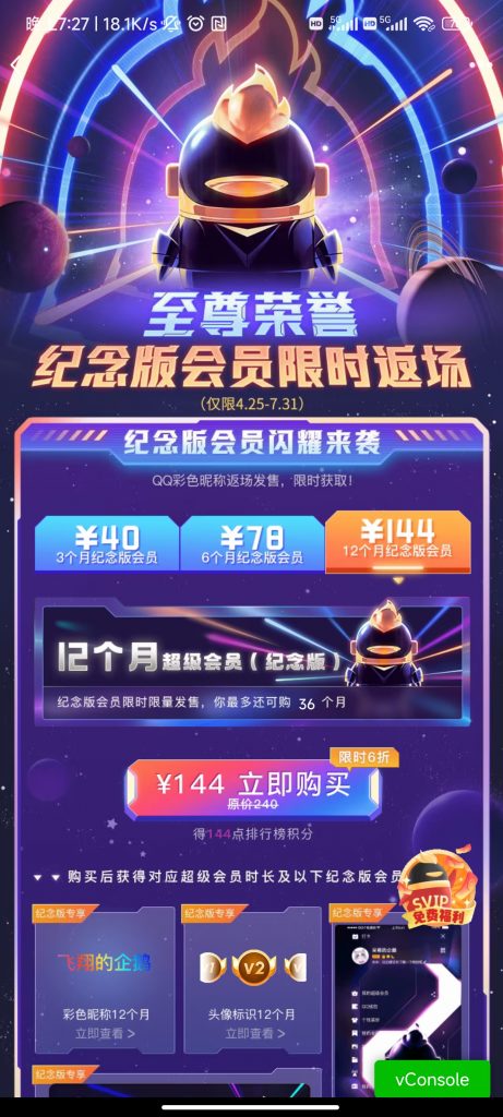 至尊荣耀,纪念版会员限时返场,QQ等级加速、代练助您畅享聊天