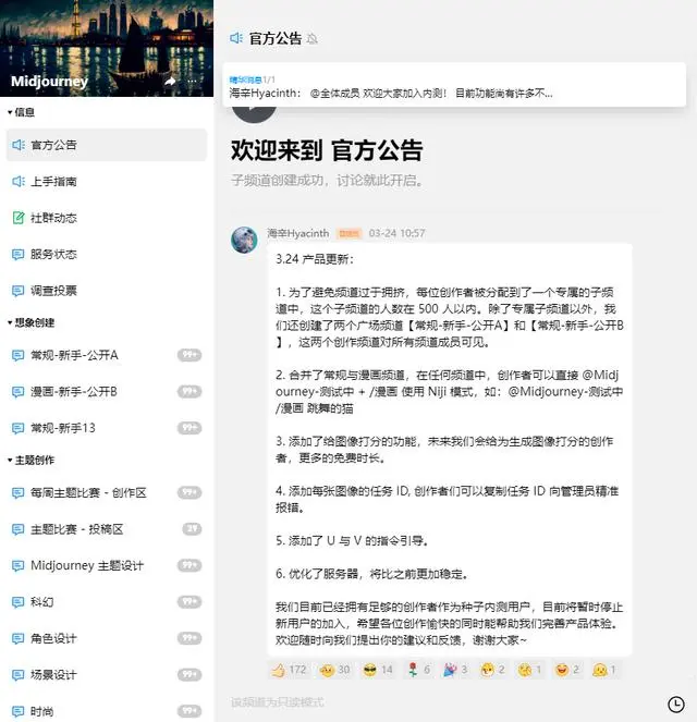 然而,国内用户却因为Midjourney的部署在Discord上,以及其英文界面和描述,让许多用户觉得使用上有些麻烦。现在,这个问题终于得到了解决,中文版的Midjourney来了!