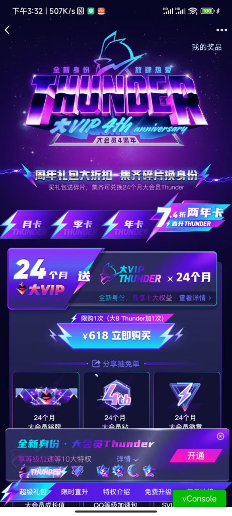 大会员4周年-Thunder:QQ等级加速,QQ等级代练和QQ等级计算全面提升!
