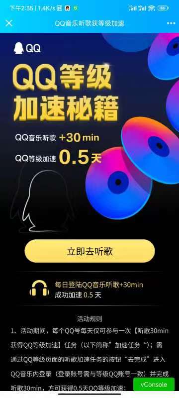 在年度的黄金时刻,QQ等级部门提出了一项全新的策略来推动等级提升,该策略原计划于7月1日启动,名为“QQ音乐-沉浸式音乐体验30分钟,尽享QQ等级的半日飞速提升”。然而,原计划的启动日期在公告发布后被延后到7月4日。