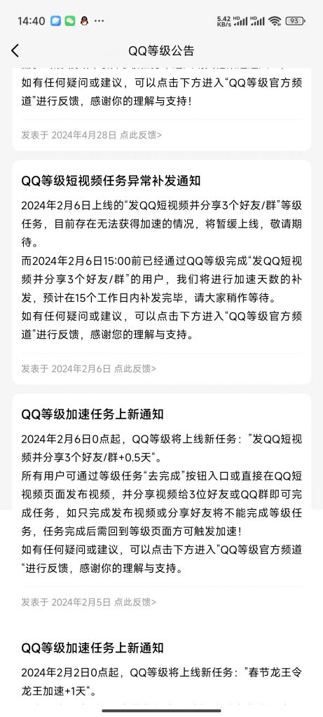 根据官方公告,自2024年2月6日0点起,全新的等级加速任务将正式上线。用户只需通过等级任务“去完成”按钮入口或直接在QQ短视频页面发布视频,并成功将视频分享给3位好友或QQ群,即可获得0.5天的等级加速。需要注意的是,用户必须同时完成发布视频和分享好友两个步骤,才能触发等级加速效果。