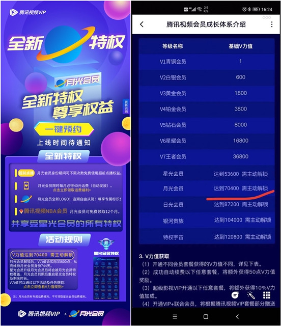 星光会员之后再追加推出: 月光会员, 日光会员, 银河贵族, 特权宇宙.