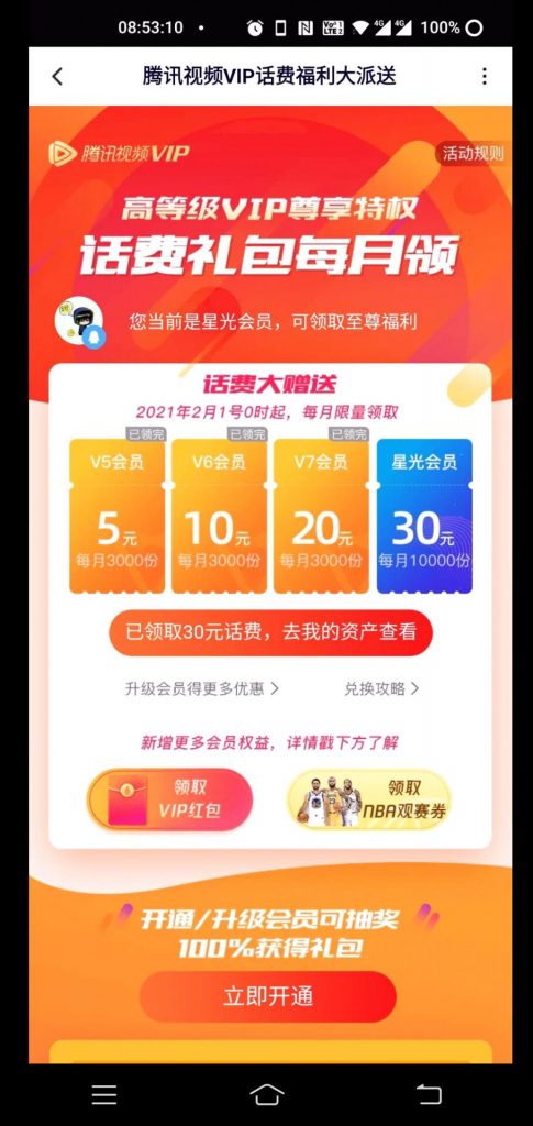 自从腾讯视频将星光会员的话费活动改成限量领取后, 关于腾讯视频的议题就一直不断